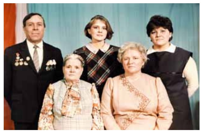 Семья Даниловых: слева направо сидят: теща А. Рудчук, супруга Д. А. Данилова; стоят: П. Г. Данилов, дочери – С. П. Данилова, И. П. Тимофеева