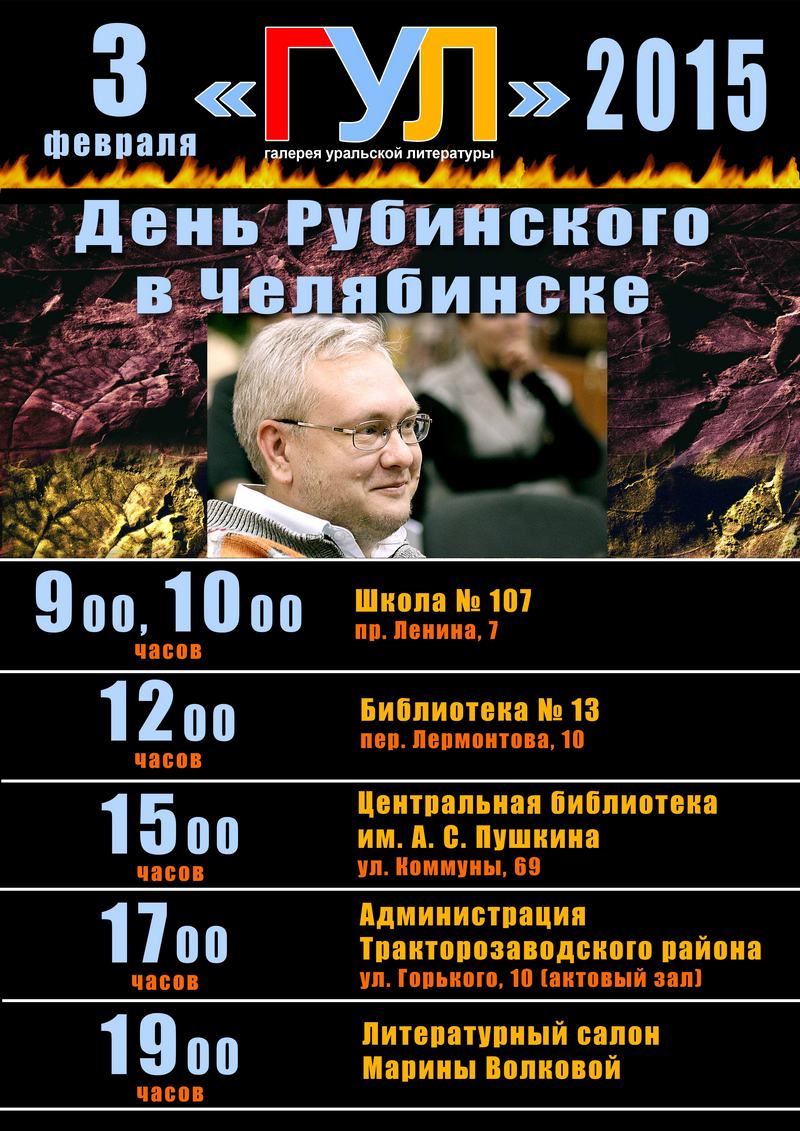 - Константин Рубинский в «Пушкинке» // ВО!круг книг : [блог Центральной библиотеки им. А. С. Пушкина и библиотек г. Челябинска]. – URL: https://vokrugknig.blogspot.com/2015/02/blog-post_4.html ; LIVEJOURNAL. – 2015. – 4 февр. https://vokrug-knig.livejournal.com/108748.html (дата обращения: 10.03.2026).