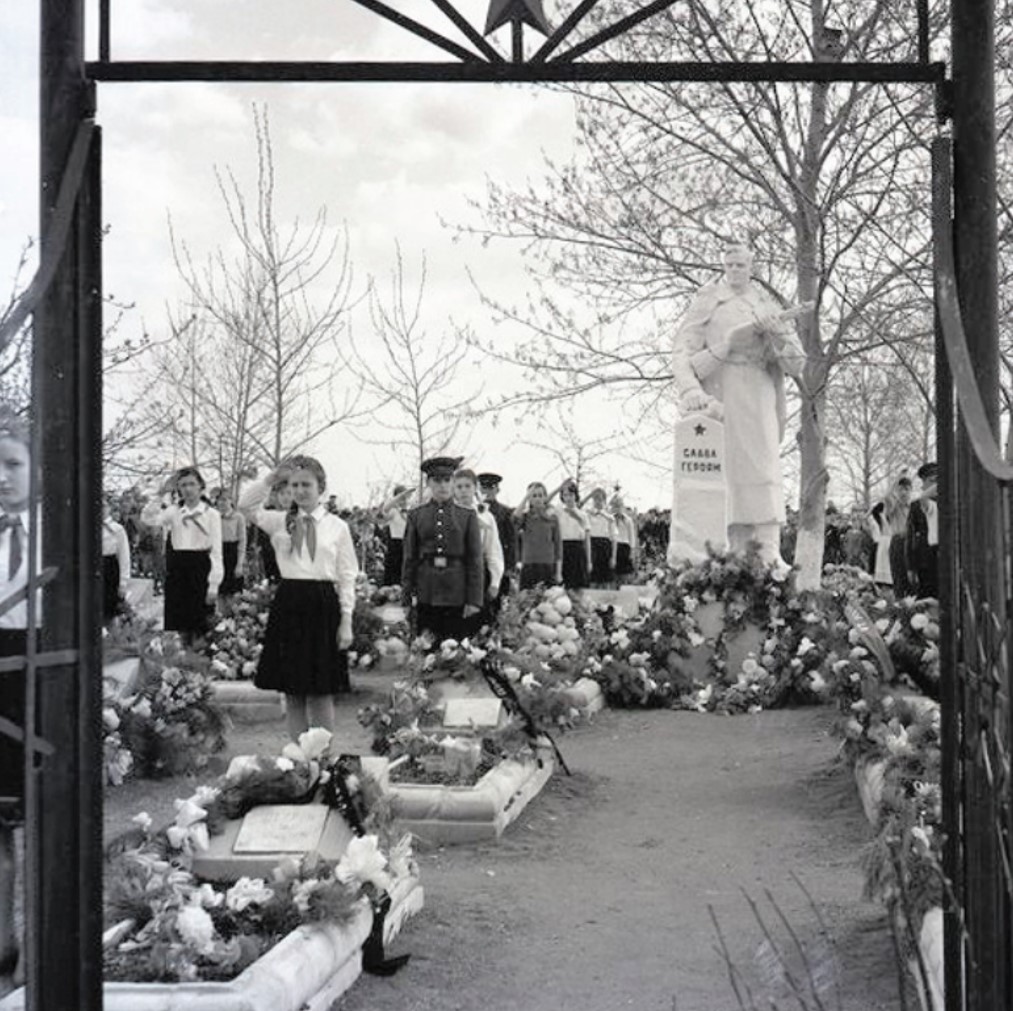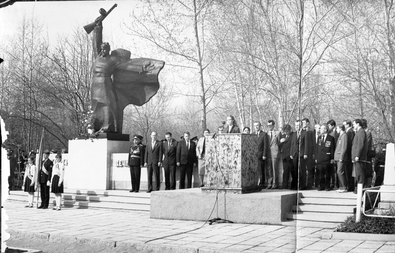 Открытие памятника «Солдат с автоматом» на братской могиле. Май 1975 г.