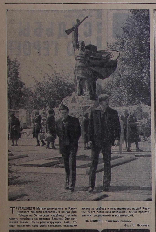 - Танов, В. Памятники немеркнущей славы : [об открытии памятников к 30-летию Победы на Успенском кладбище, саду Победы, на улице Коммунистической в Металлургическом районе, в посёлке Новосинеглазо, у здания ЧВВАКУШа] / В. Танов // Челябинский рабочий. – 1975. – 10 мая. – С. 3.