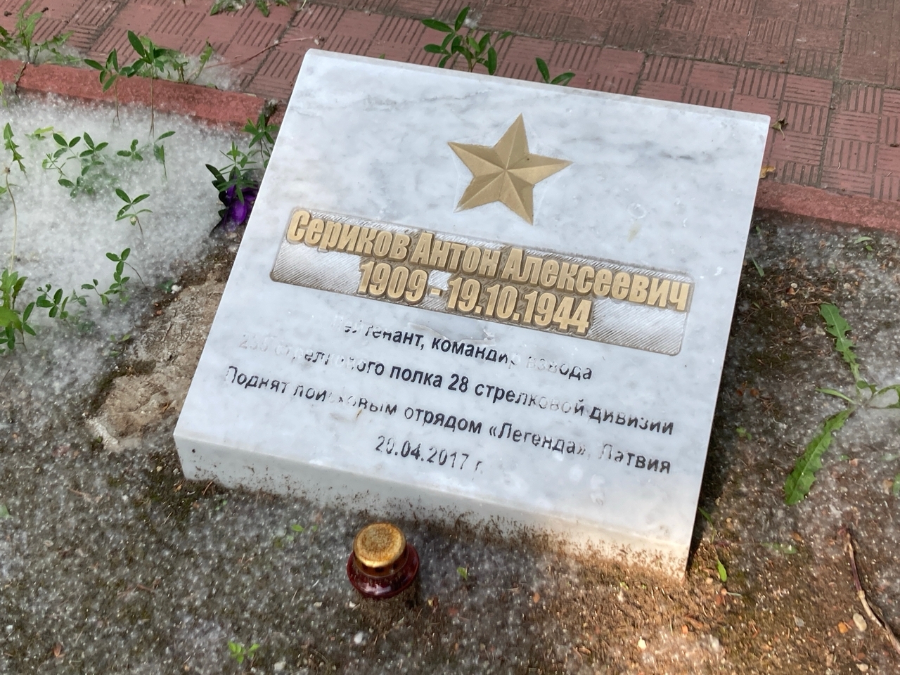 В августе 2017 г. в братской могиле захоронили прах Антона Александровича Серикова (1909–1944), лейтенанта, призванного на фронт Магнитогорским горвоенкоматом, командира взвода 235-го стрелкового полка 29-й стрелковой дивизии. Его останки вместе с орденом Красной Звезды и медалью «За отвагу» были найдены в конце апреля того же года поисковым отрядом «Легенда» из Латвии.